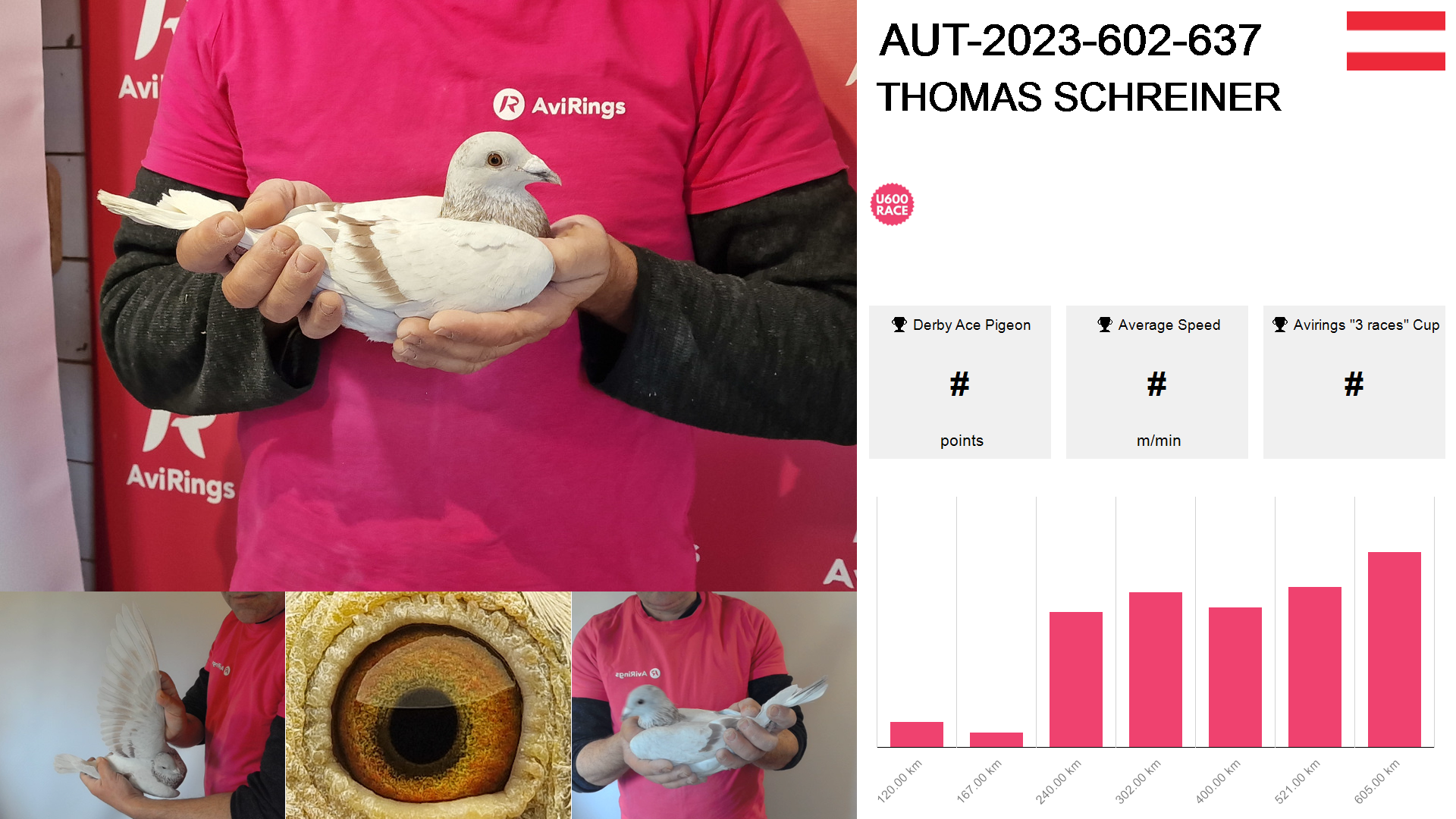 | Race | Position | Number of pigeons | Percent | Speed | Distance |
