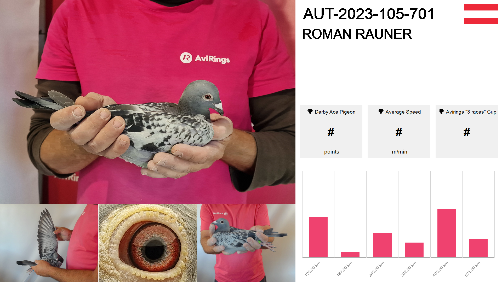 | Race | Position | Number of pigeons | Percent | Speed | Distance |