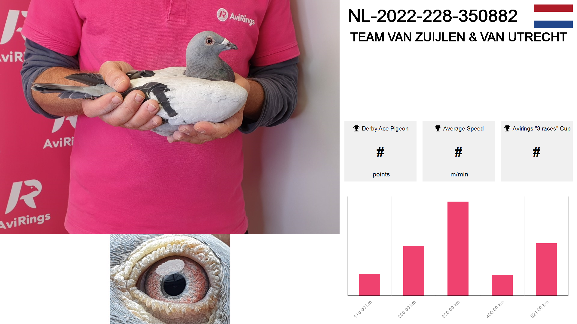 | Race | Position | Number of pigeons | Percent | Speed | Distance |