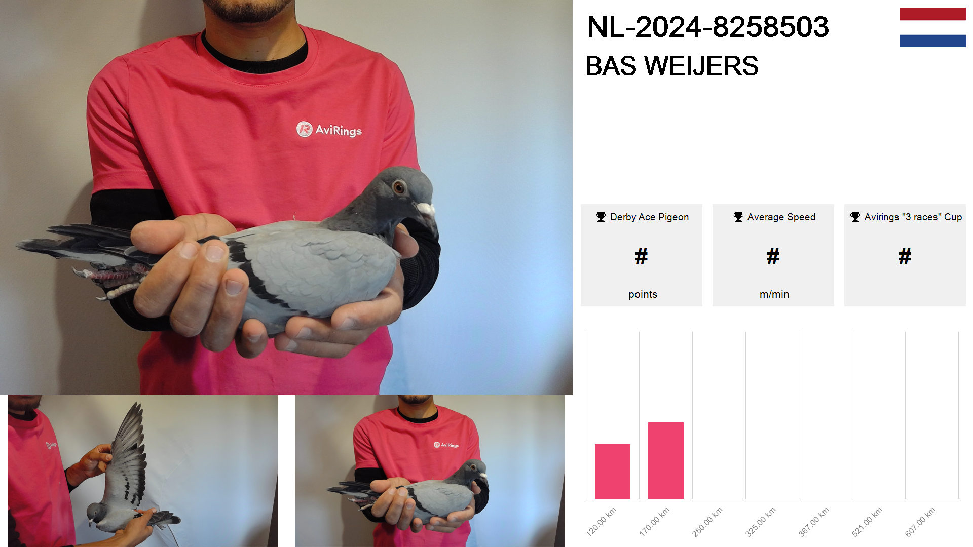 | Race | Position | Number of pigeons | Percent | Speed | Distance |