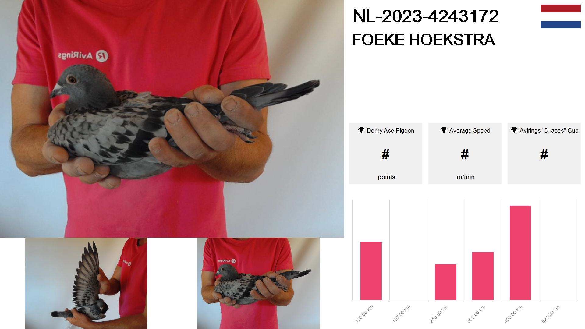 | Race | Position | Number of pigeons | Percent | Speed | Distance |