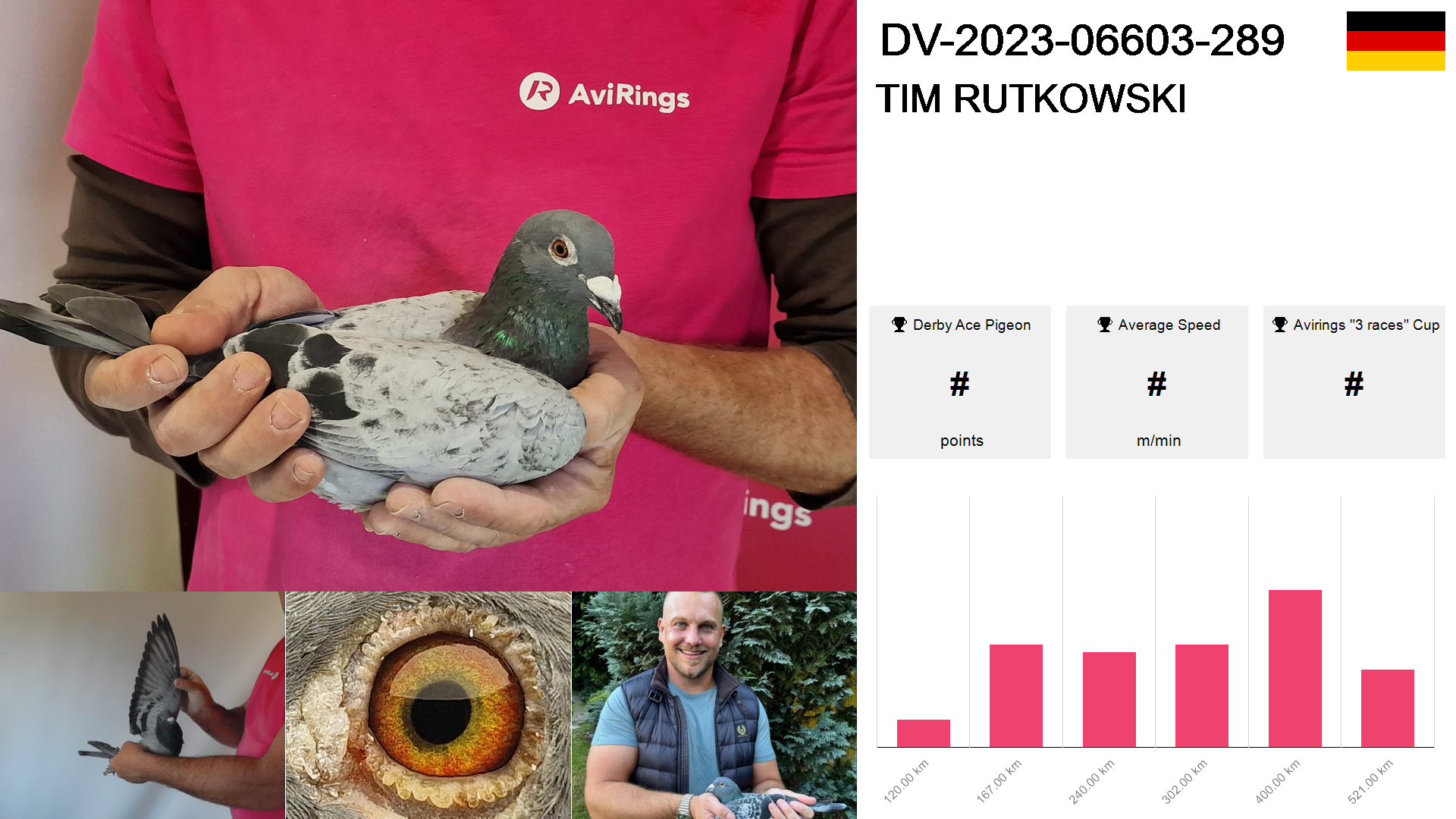 | Race | Position | Number of pigeons | Percent | Speed | Distance |
