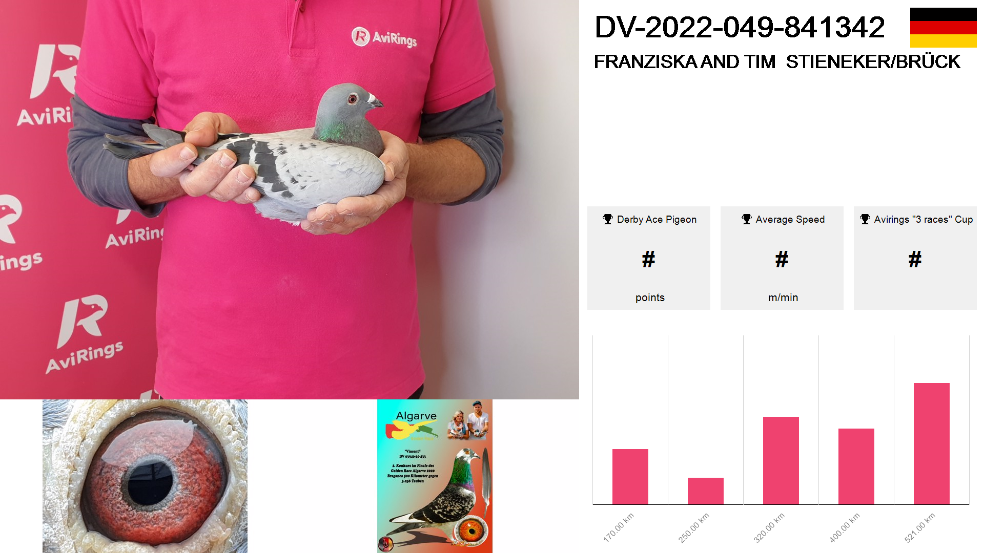 | Race | Position | Number of pigeons | Percent | Speed | Distance |