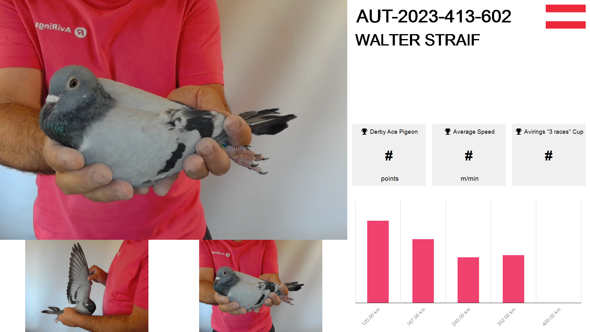 | Race | Position | Number of pigeons | Percent | Speed | Distance |