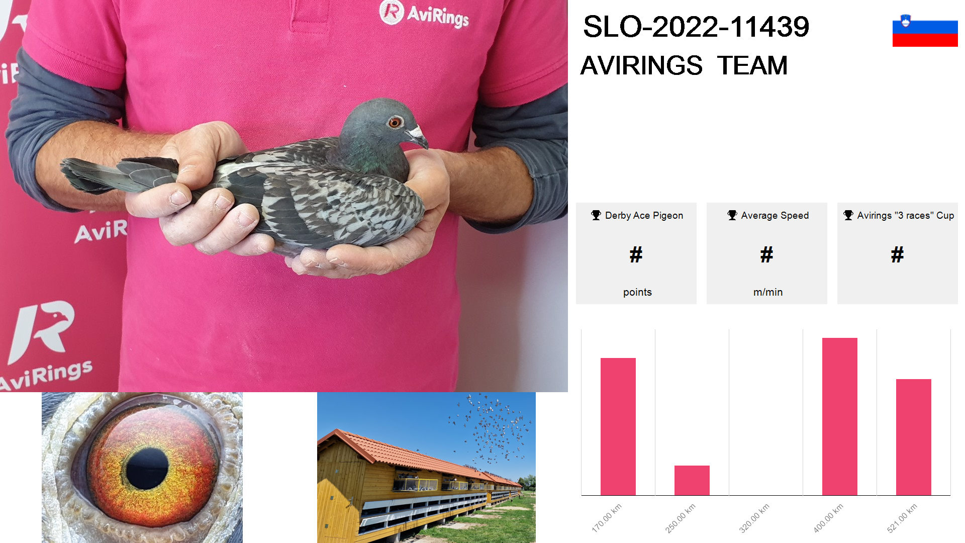 | Race | Position | Number of pigeons | Percent | Speed | Distance |