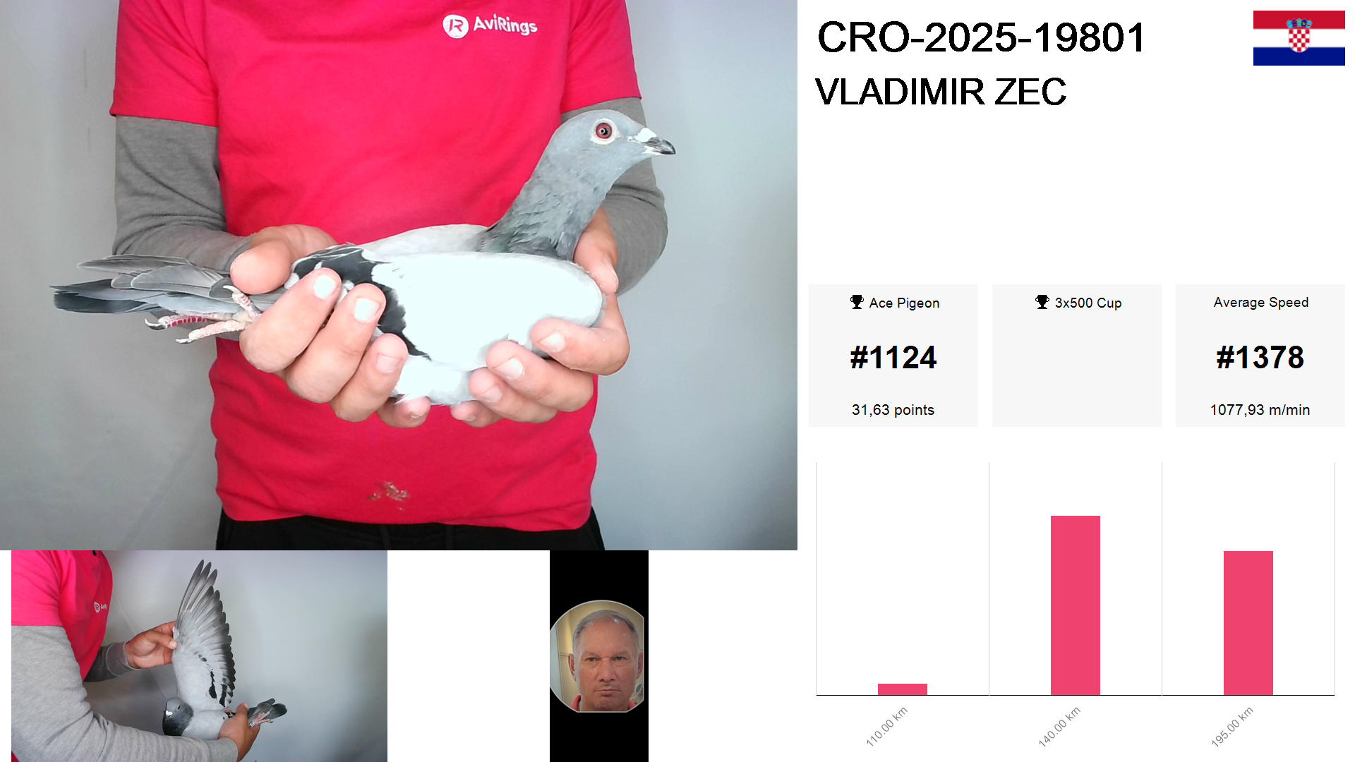 | Race | Position | Number of pigeons | Percent | Speed | Distance |