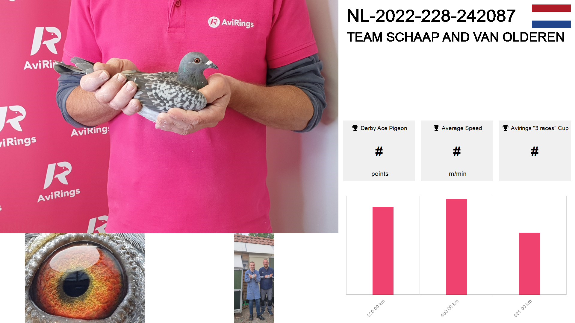 | Race | Position | Number of pigeons | Percent | Speed | Distance |