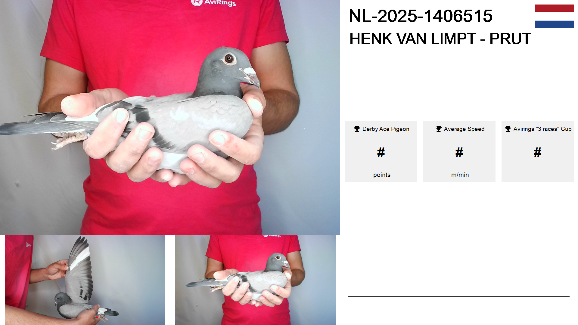 | Race | Position | Number of pigeons | Percent | Speed | Distance |