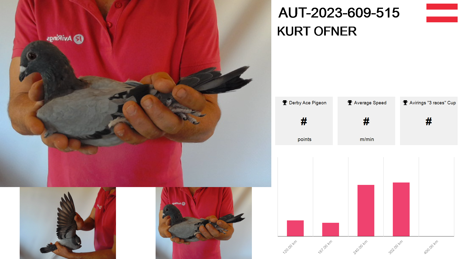 | Race | Position | Number of pigeons | Percent | Speed | Distance |