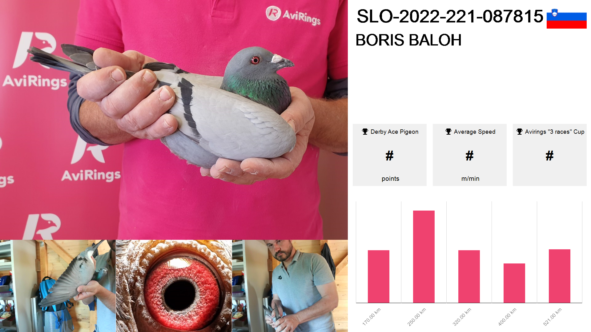 | Race | Position | Number of pigeons | Percent | Speed | Distance |