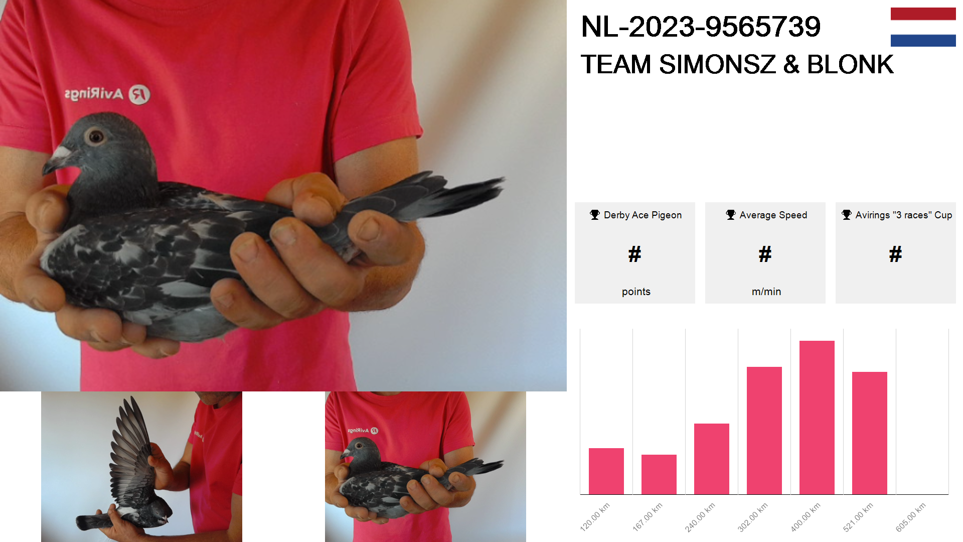 | Race | Position | Number of pigeons | Percent | Speed | Distance |