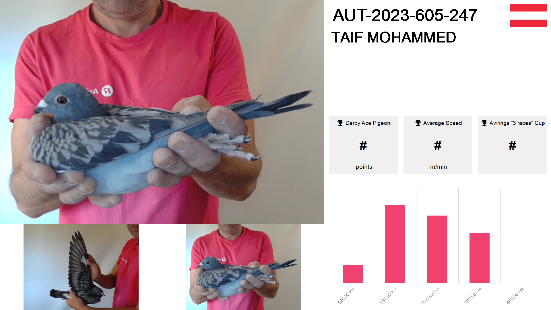 | Race | Position | Number of pigeons | Percent | Speed | Distance |