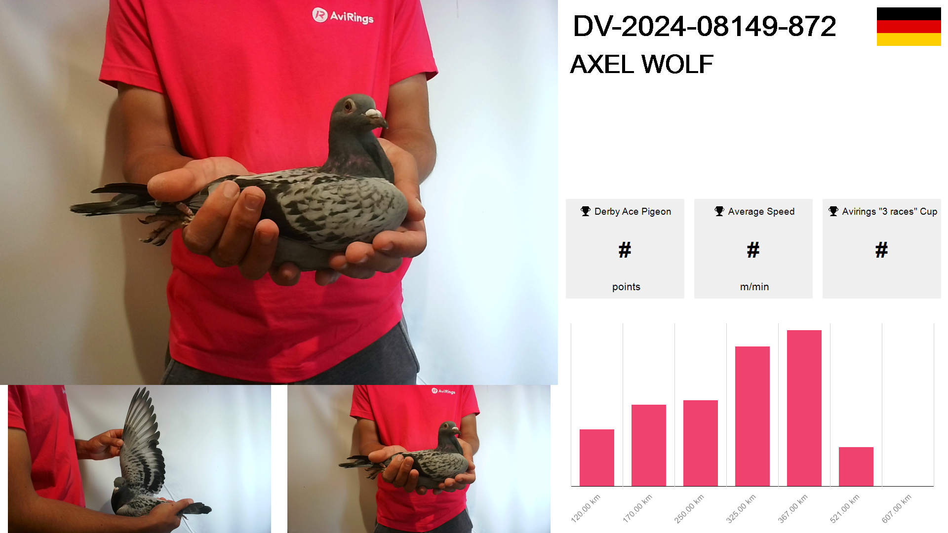 | Race | Position | Number of pigeons | Percent | Speed | Distance |