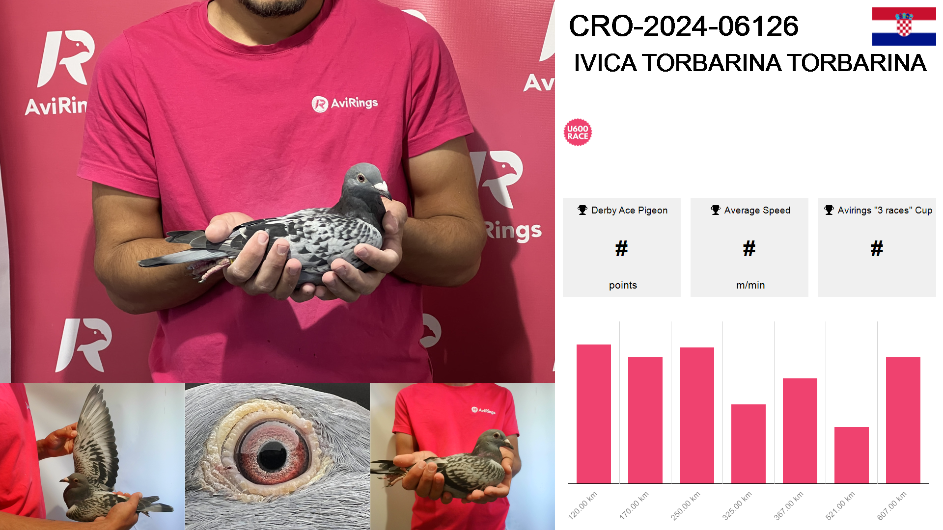 | Race | Position | Number of pigeons | Percent | Speed | Distance |
