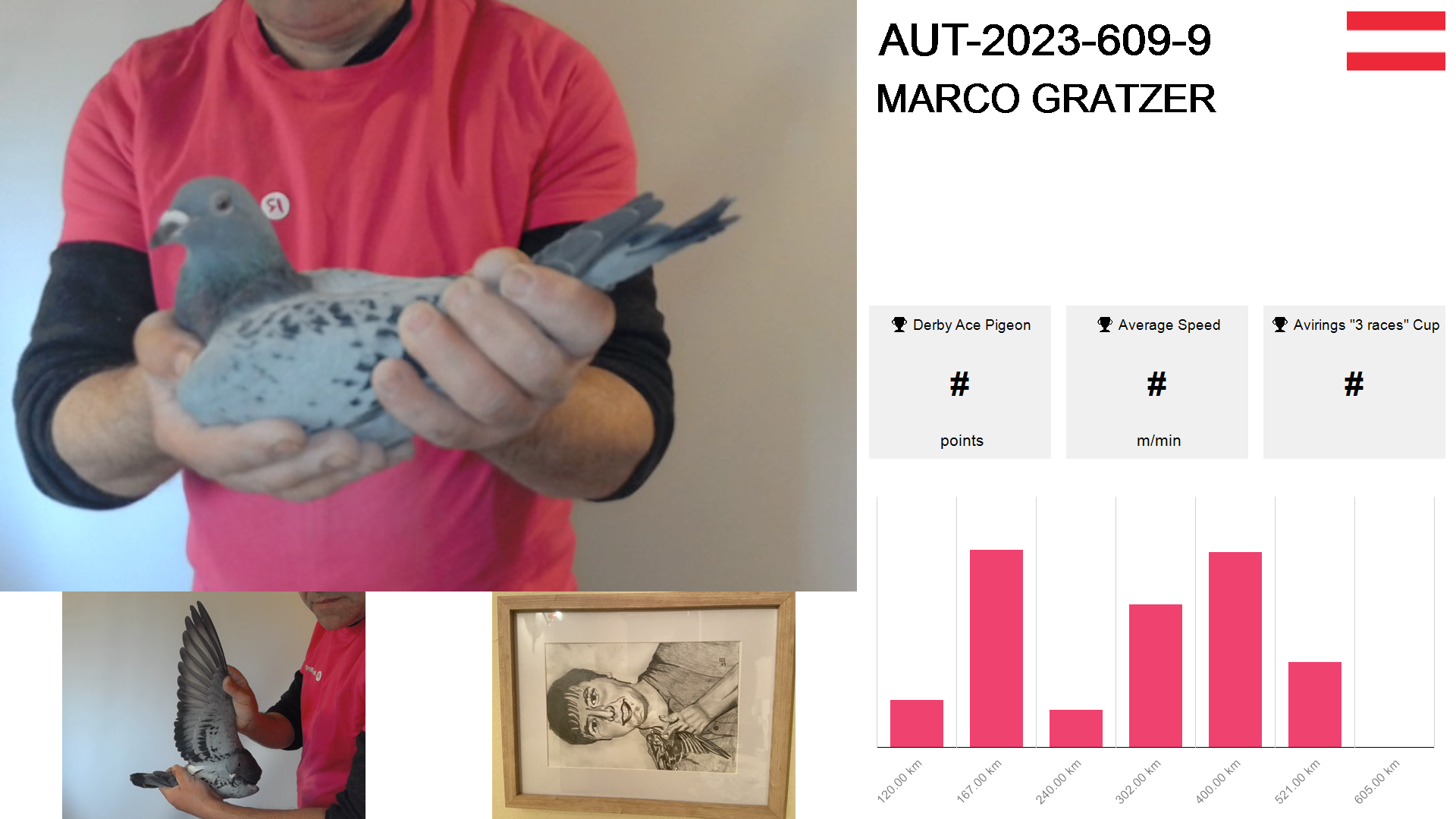 | Race | Position | Number of pigeons | Percent | Speed | Distance |