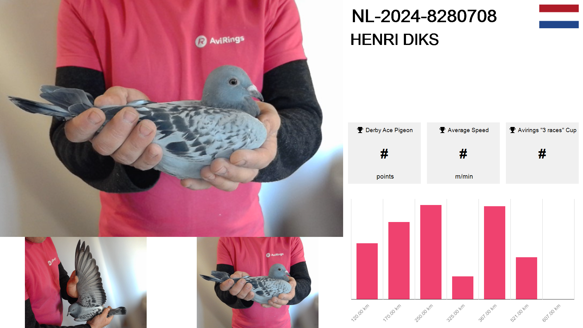 | Race | Position | Number of pigeons | Percent | Speed | Distance |