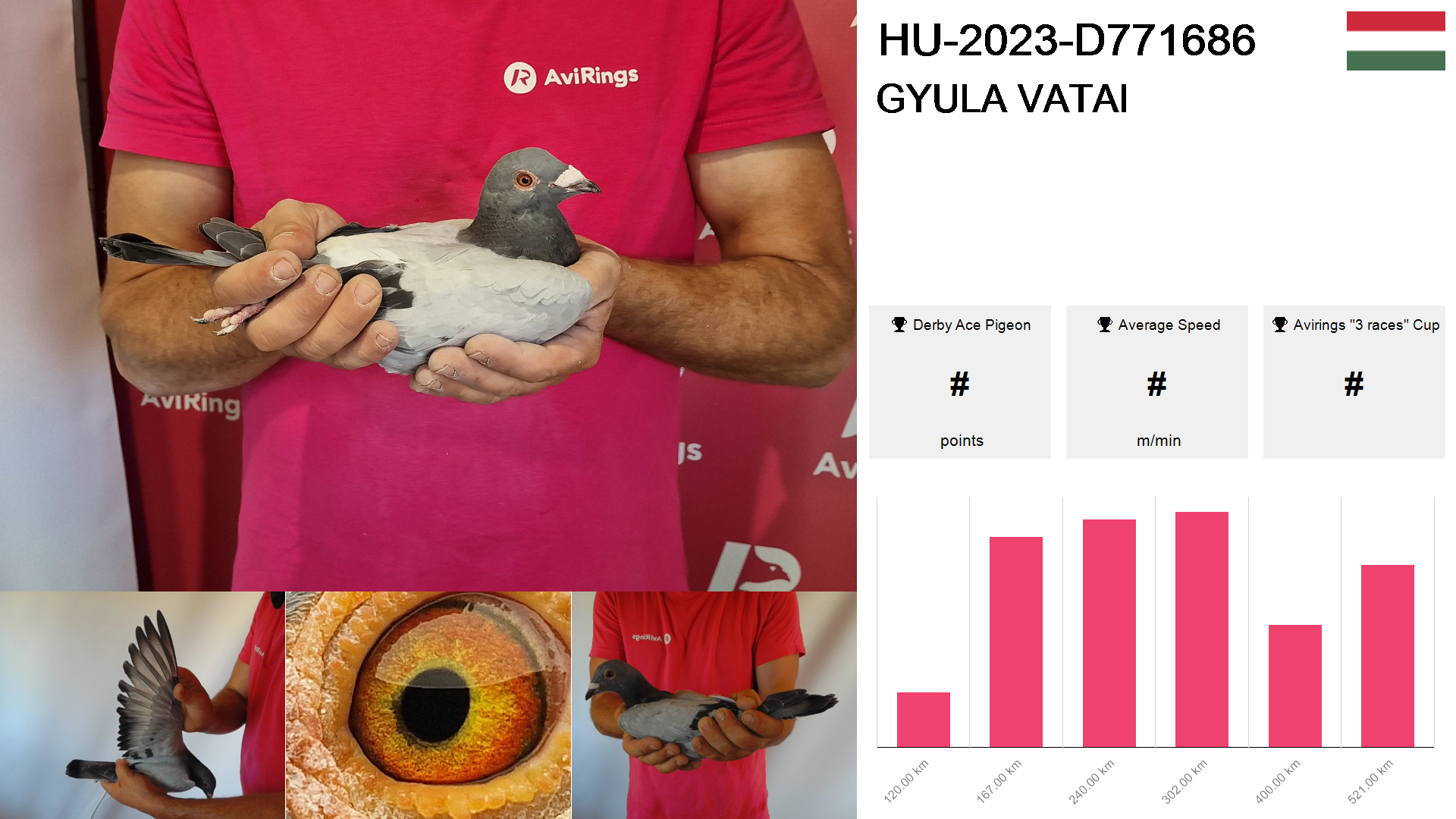 | Race | Position | Number of pigeons | Percent | Speed | Distance |