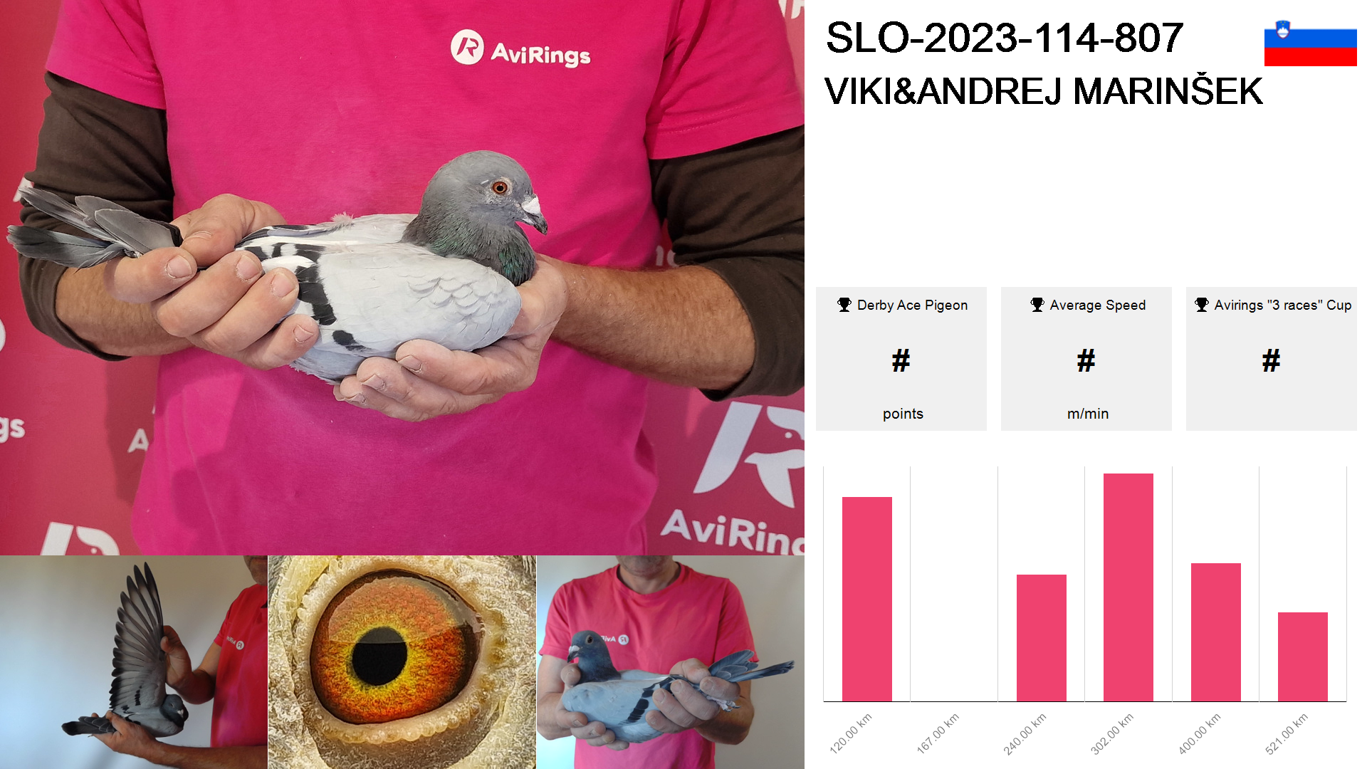 | Race | Position | Number of pigeons | Percent | Speed | Distance |