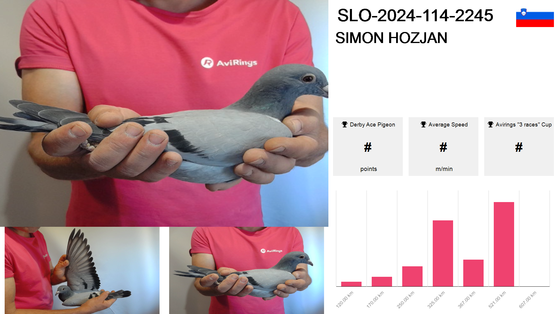 | Race | Position | Number of pigeons | Percent | Speed | Distance |