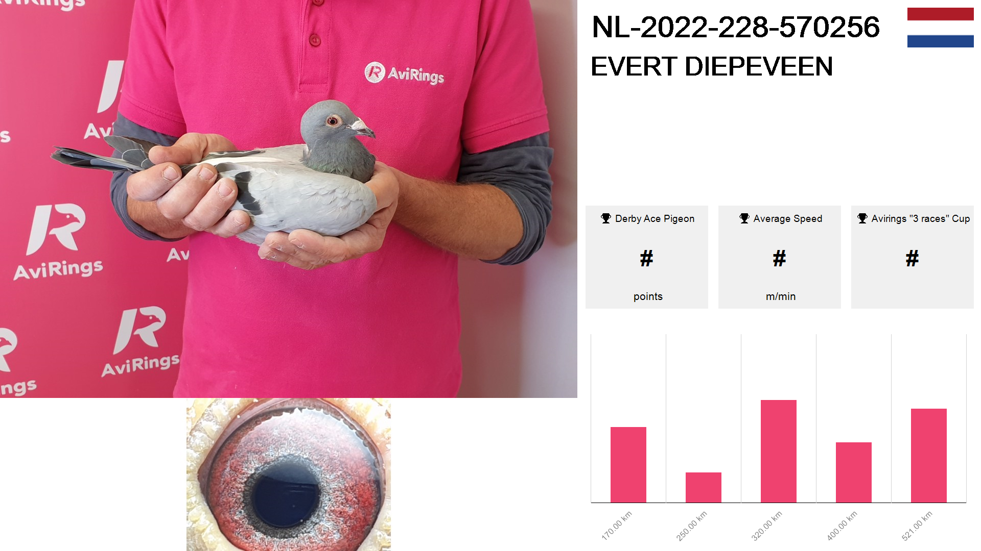 | Race | Position | Number of pigeons | Percent | Speed | Distance |