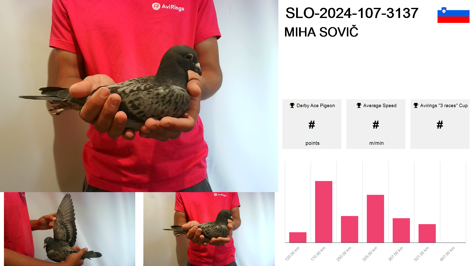 | Race | Position | Number of pigeons | Percent | Speed | Distance |