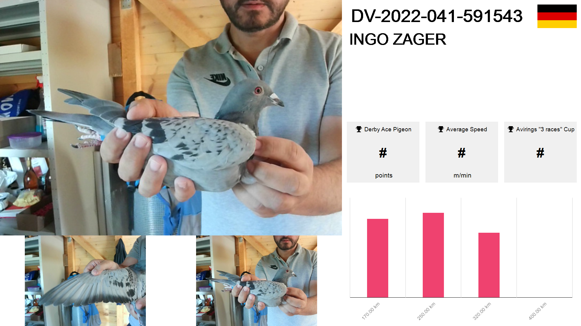 | Race | Position | Number of pigeons | Percent | Speed | Distance |