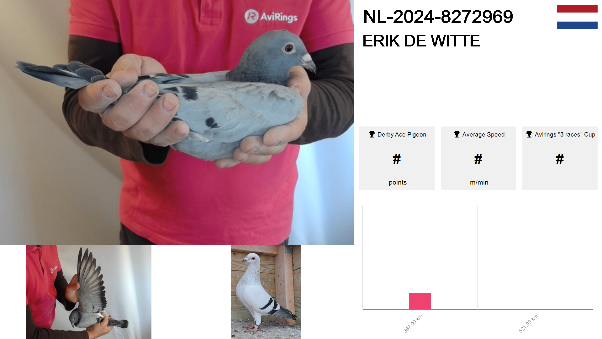 | Race | Position | Number of pigeons | Percent | Speed | Distance |