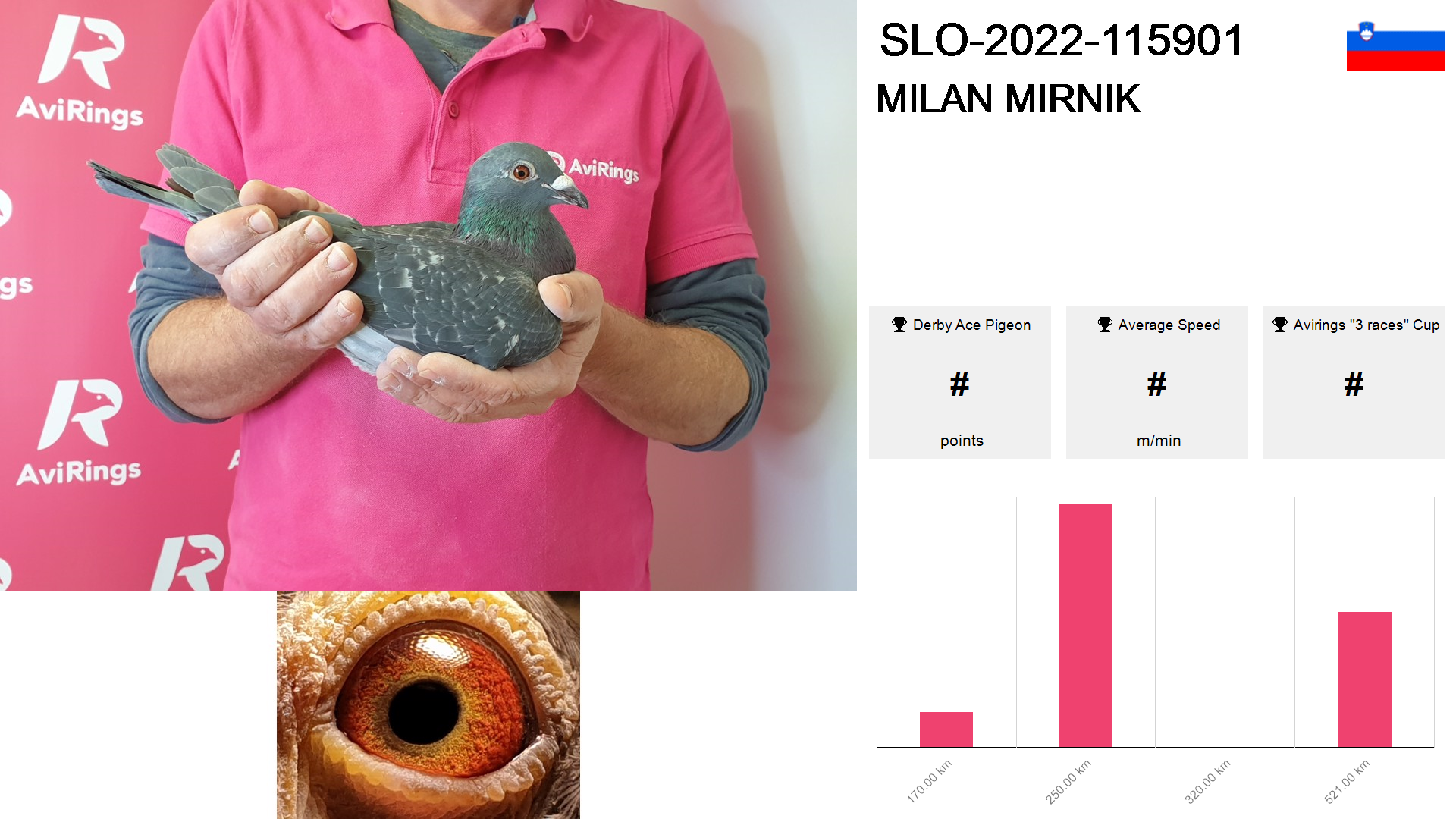 | Race | Position | Number of pigeons | Percent | Speed | Distance |