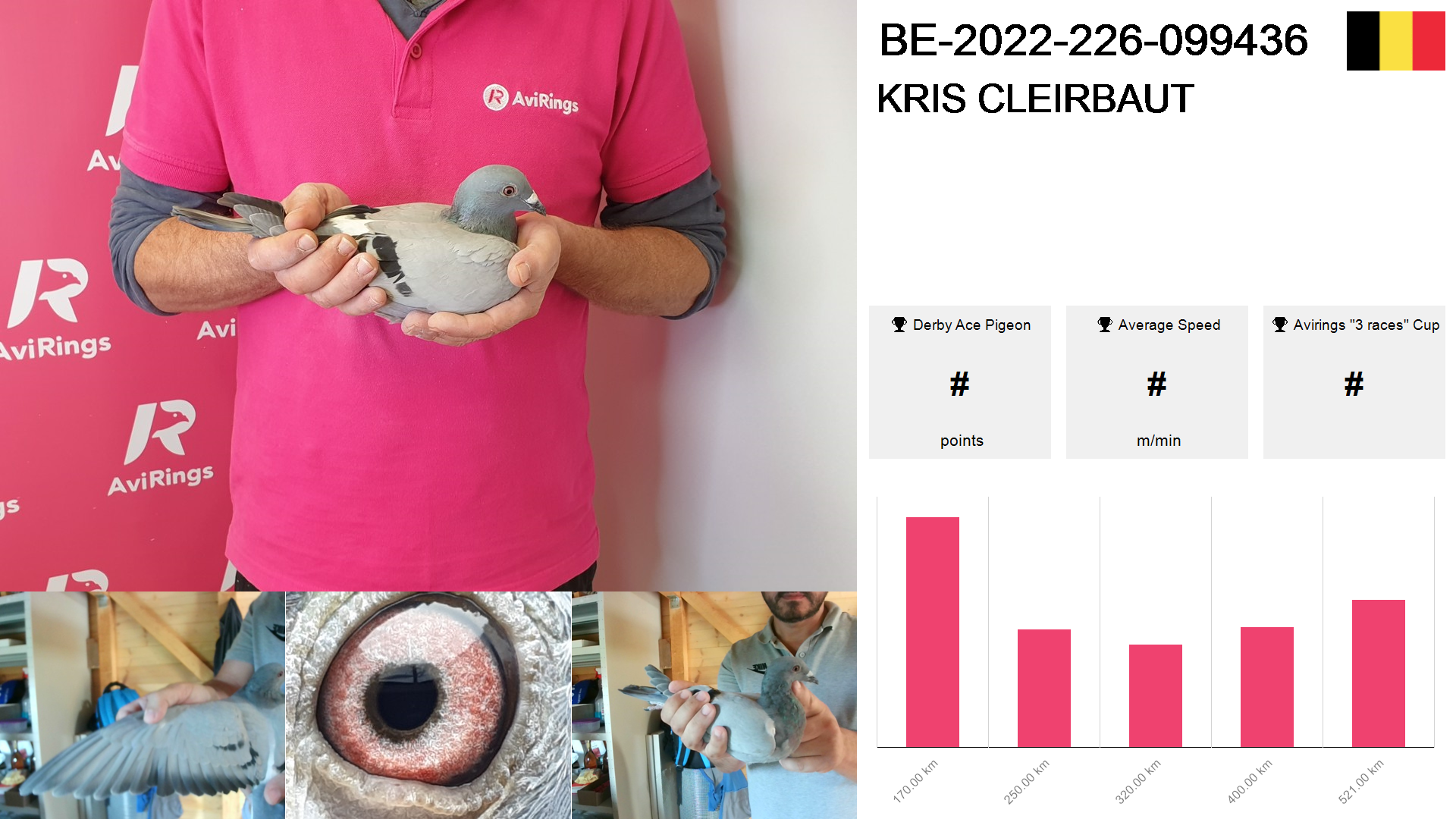| Race | Position | Number of pigeons | Percent | Speed | Distance |