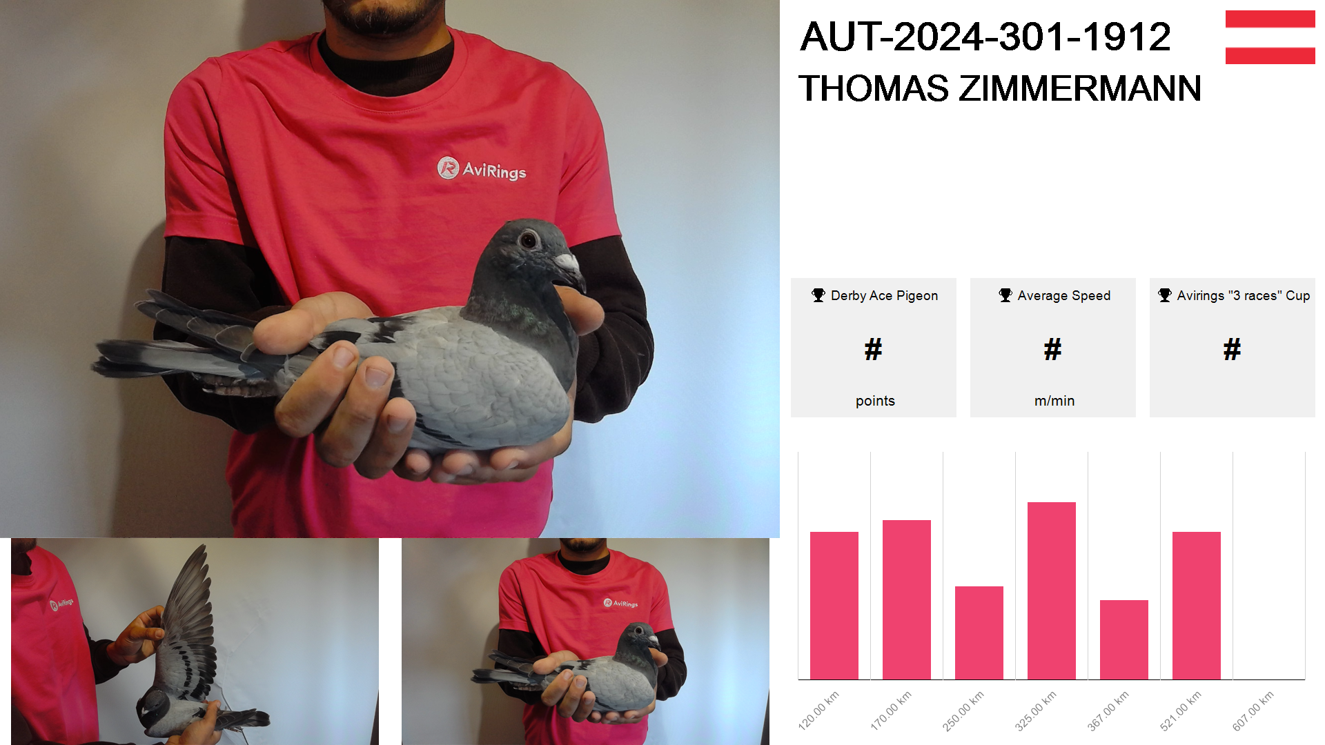 | Race | Position | Number of pigeons | Percent | Speed | Distance |