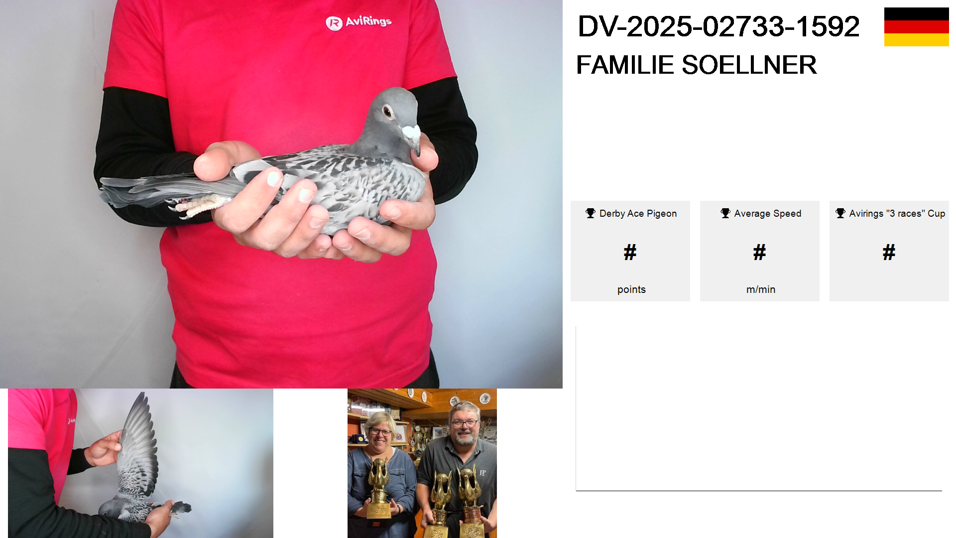| Race | Position | Number of pigeons | Percent | Speed | Distance |