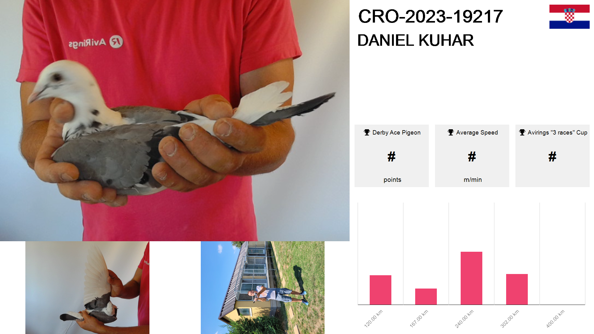 | Race | Position | Number of pigeons | Percent | Speed | Distance |