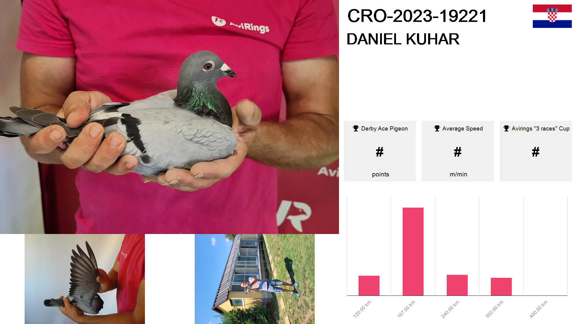 | Race | Position | Number of pigeons | Percent | Speed | Distance |