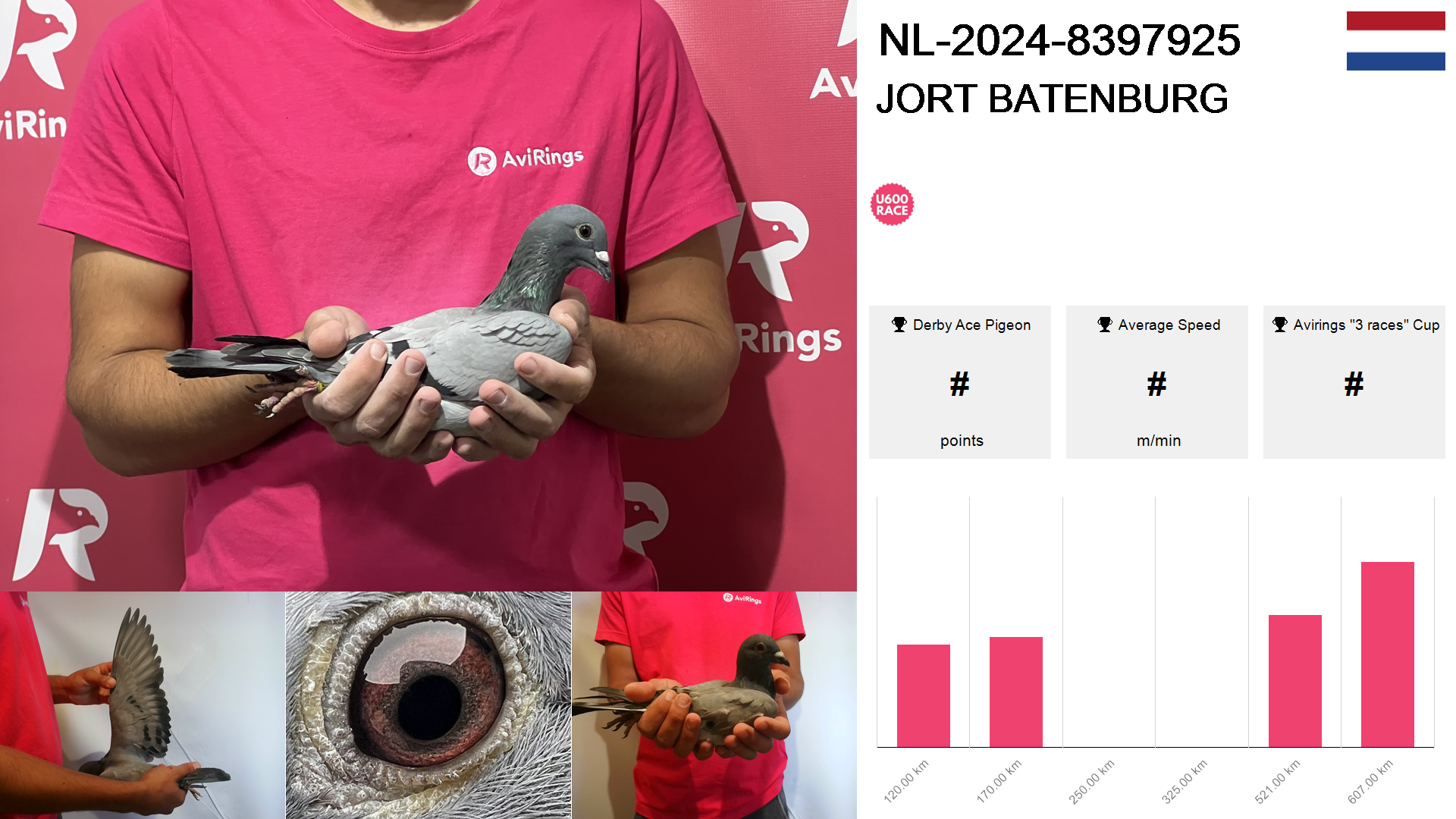 | Race | Position | Number of pigeons | Percent | Speed | Distance |
