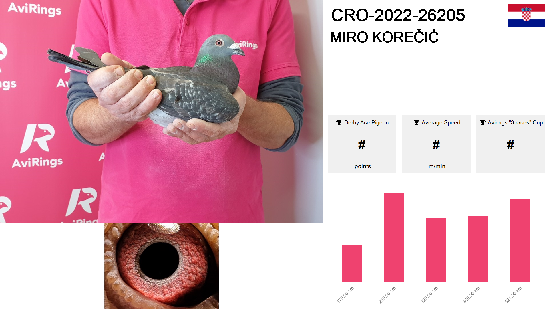| Race | Position | Number of pigeons | Percent | Speed | Distance |