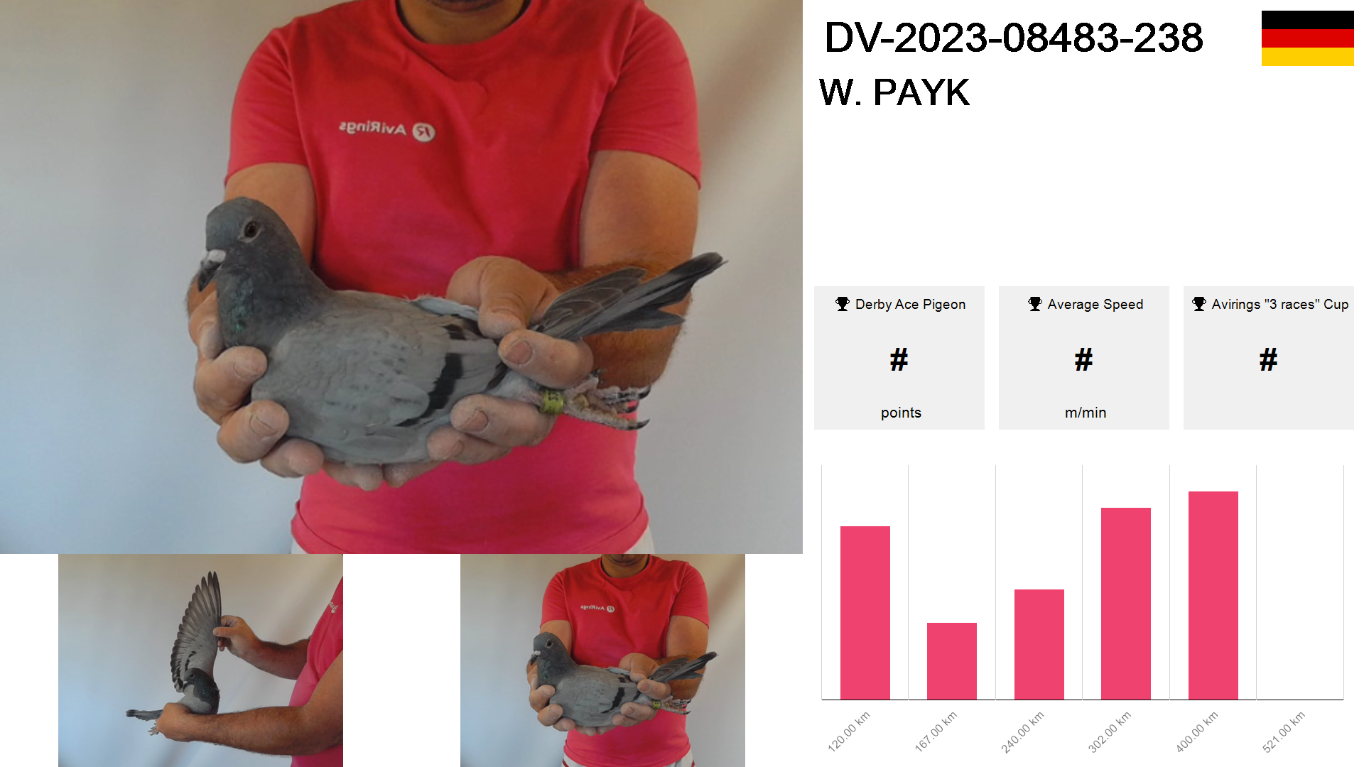 | Race | Position | Number of pigeons | Percent | Speed | Distance |