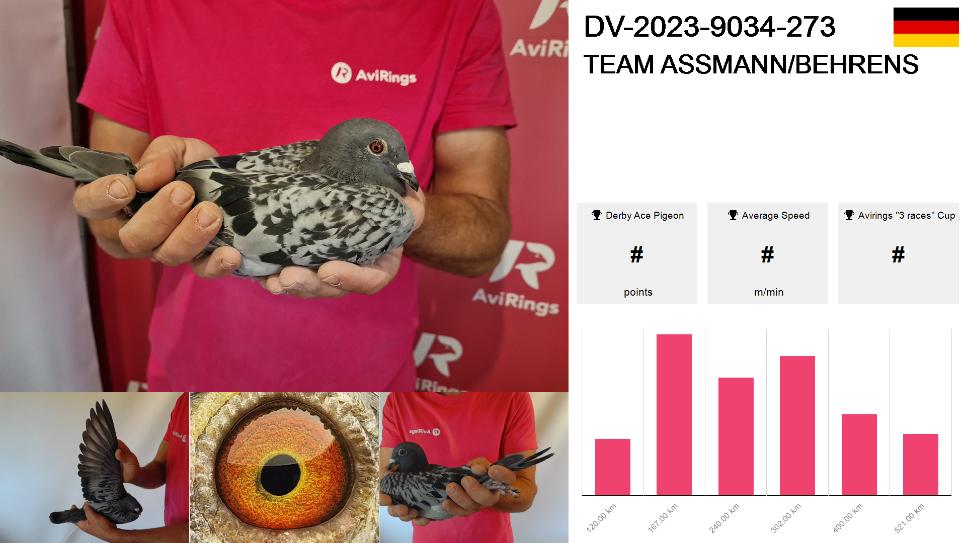 | Race | Position | Number of pigeons | Percent | Speed | Distance |