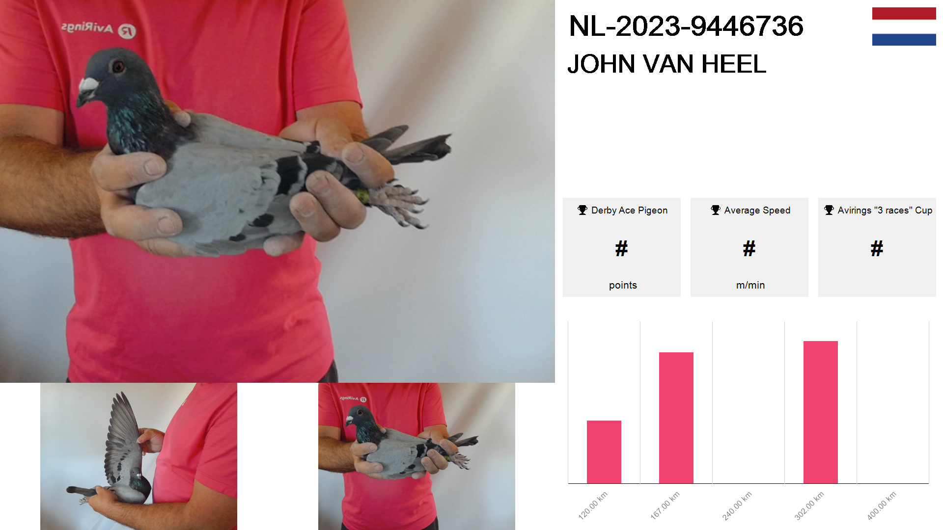 | Race | Position | Number of pigeons | Percent | Speed | Distance |