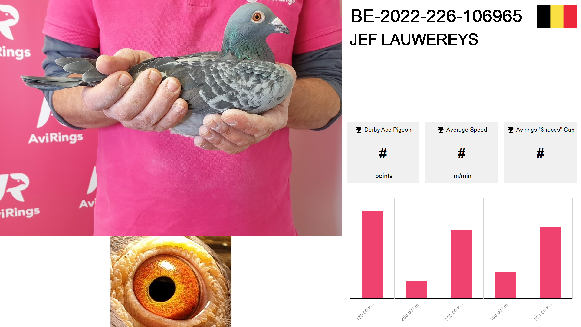 | Race | Position | Number of pigeons | Percent | Speed | Distance |