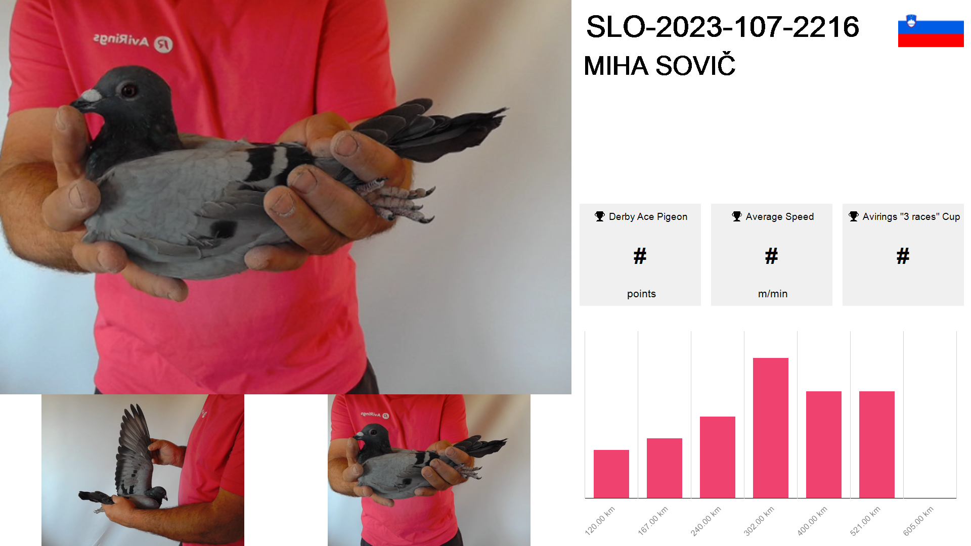 | Race | Position | Number of pigeons | Percent | Speed | Distance |