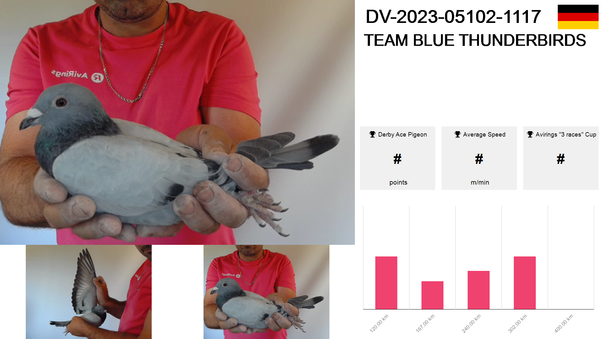| Race | Position | Number of pigeons | Percent | Speed | Distance |