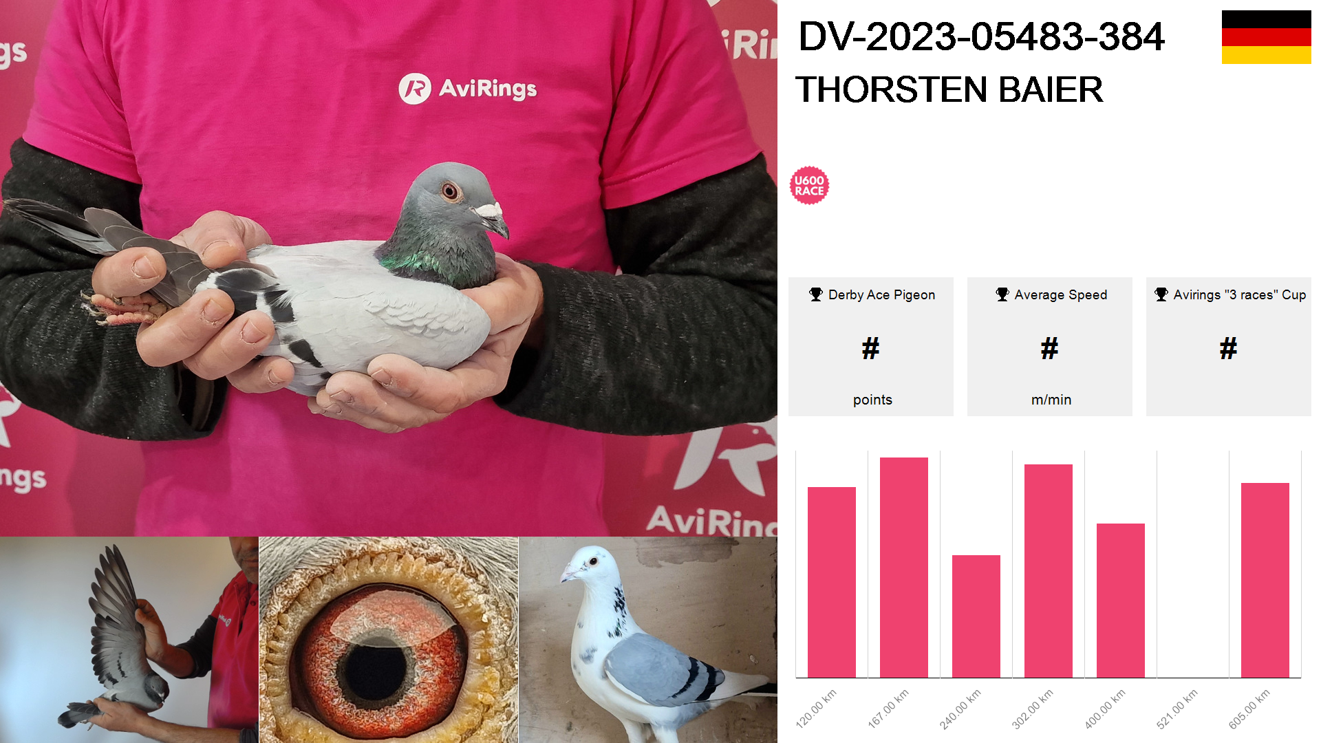 | Race | Position | Number of pigeons | Percent | Speed | Distance |