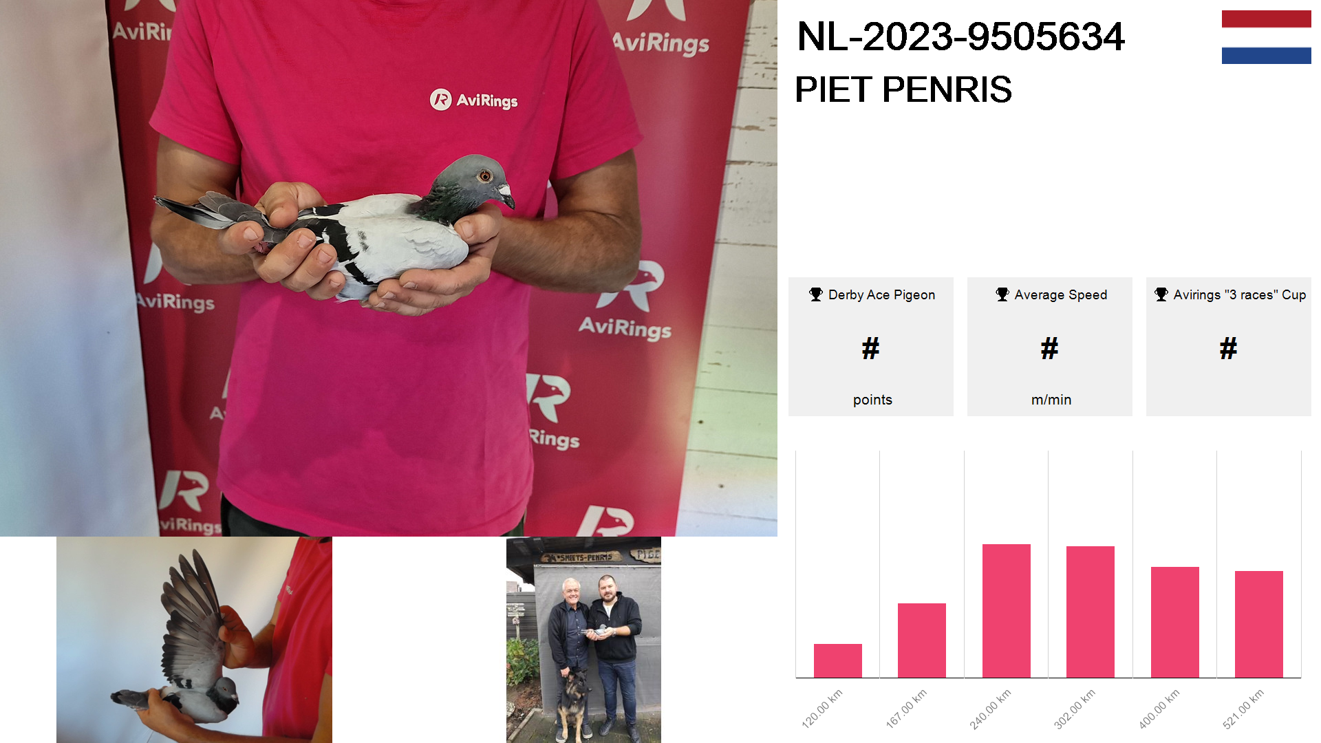 | Race | Position | Number of pigeons | Percent | Speed | Distance |