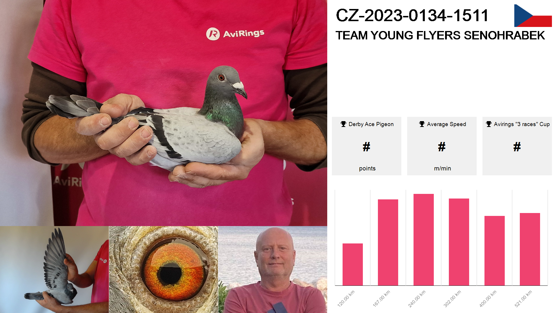 | Race | Position | Number of pigeons | Percent | Speed | Distance |