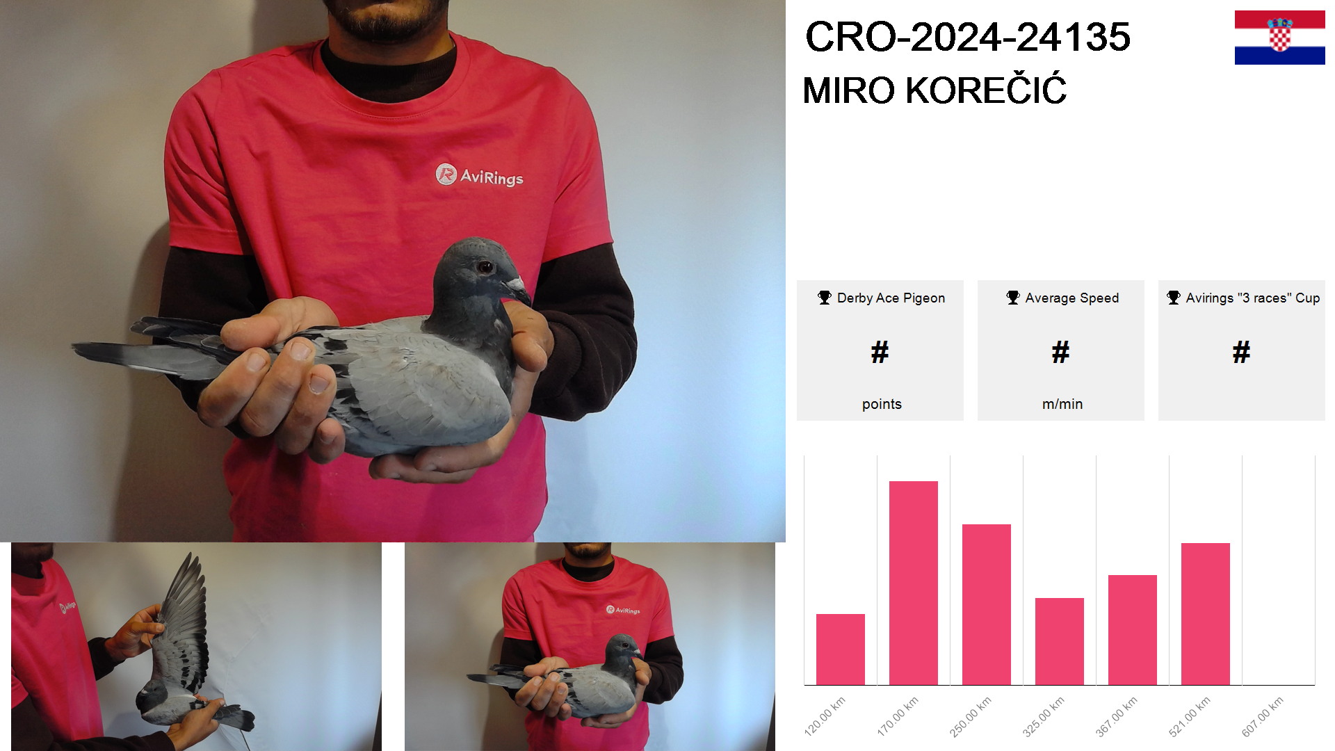 | Race | Position | Number of pigeons | Percent | Speed | Distance |