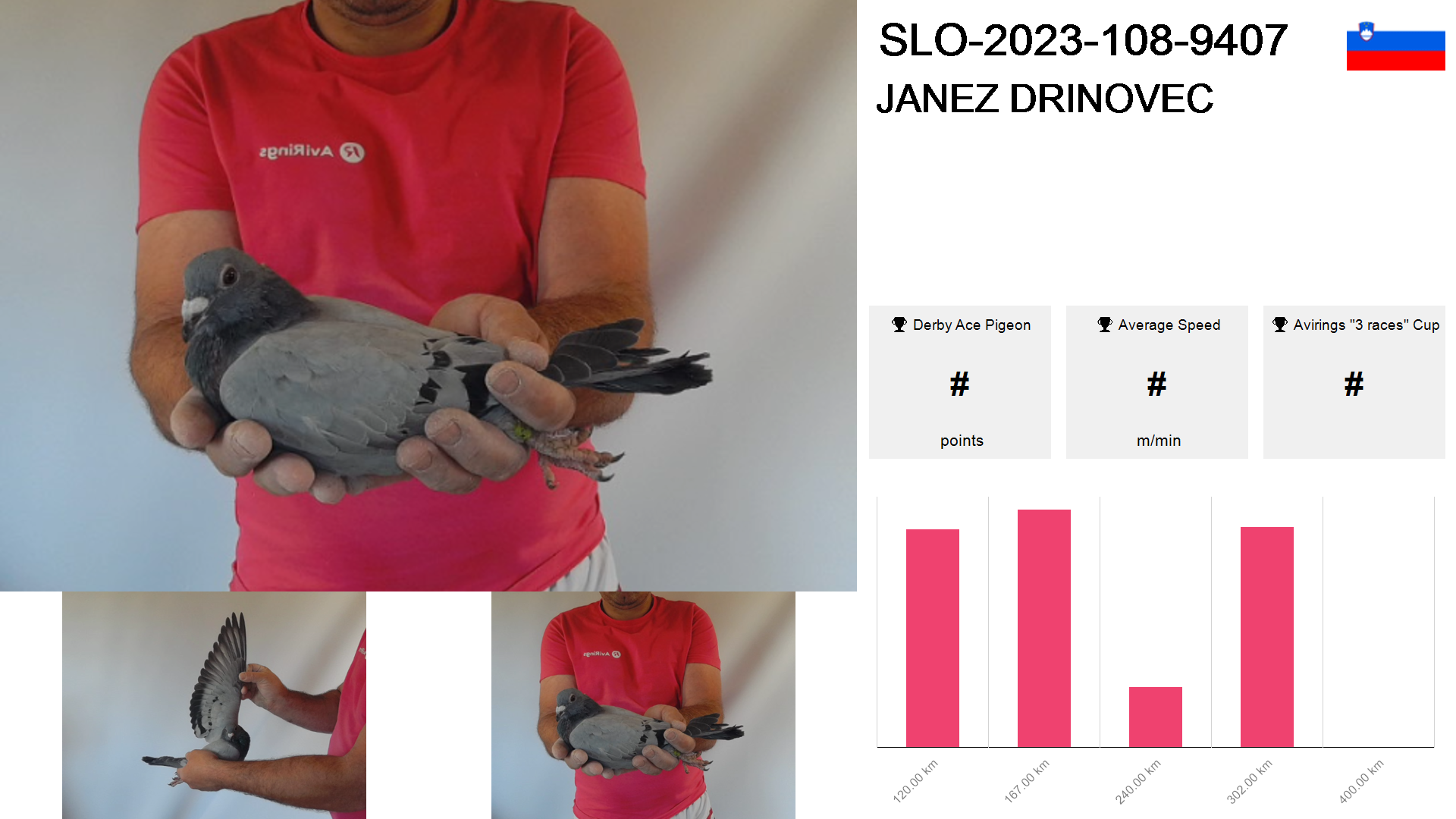| Race | Position | Number of pigeons | Percent | Speed | Distance |