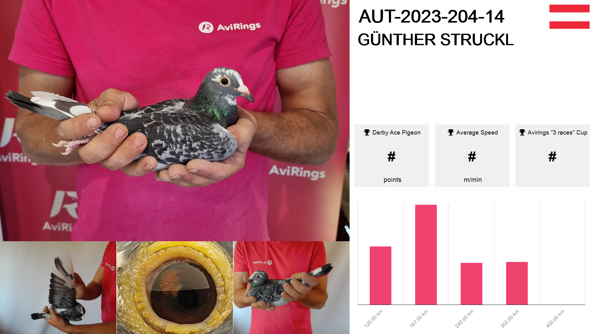 | Race | Position | Number of pigeons | Percent | Speed | Distance |