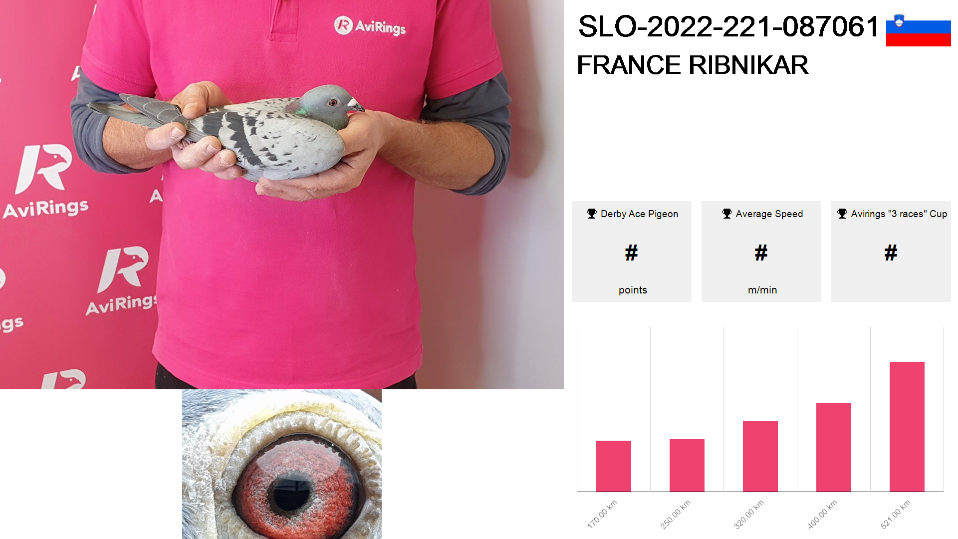 | Race | Position | Number of pigeons | Percent | Speed | Distance |