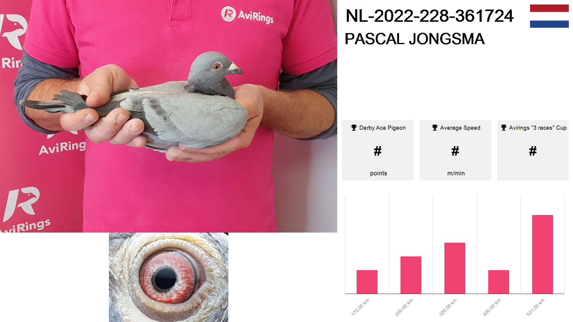 | Race | Position | Number of pigeons | Percent | Speed | Distance |