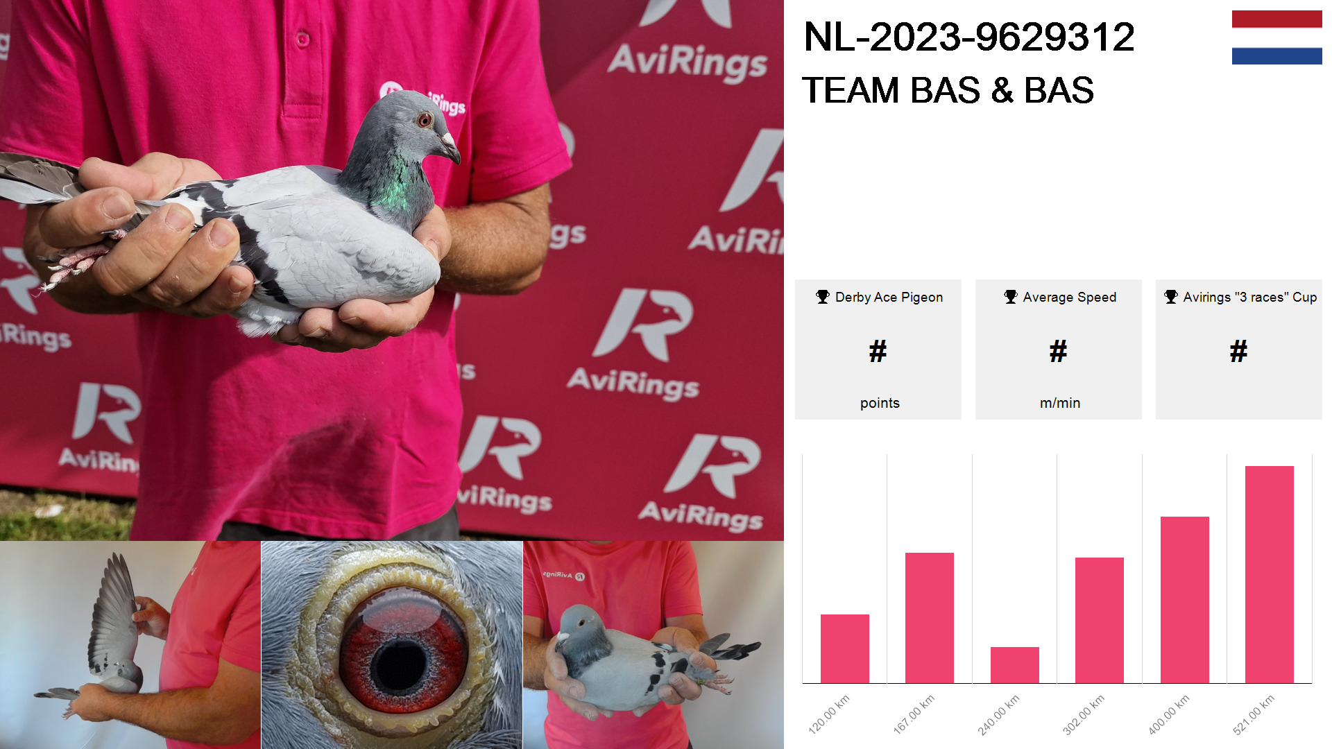 | Race | Position | Number of pigeons | Percent | Speed | Distance |
